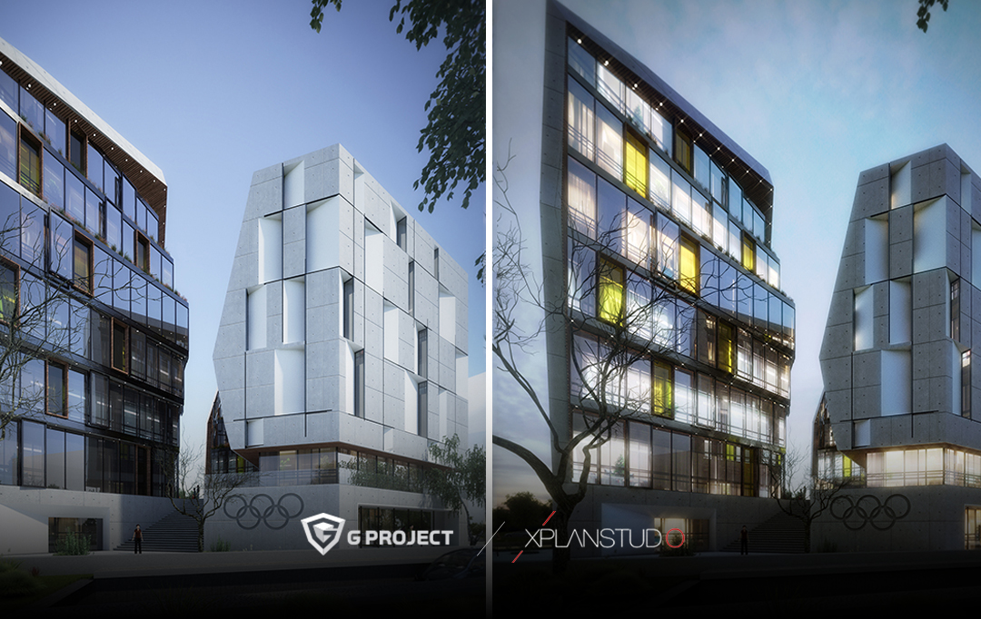 Koncepti ynë arkitektonik u bazua në formën gjeometrike të trekëndëshit dybrinjësh – formë që përqafoi edhe vetë parcela. Nga kjo formë lindi ideja jonë kryesore: tri këndet e trekëndëshit përfaqësojnë tri elementet bazë të natyrës – Ajri, Toka dhe Uji – duke reflektuar thelbin e sportit në të gjitha dimensionet e tij: - Sportet e ajrit, - Sportet e ujit, - Sportet në tokë. Kompleksi u mendua të zhvillohej në 6-7 kate, duke përfshirë federatat sportive, salla shumëfunksionale, hapësira administrative dhe rekreative – të gjitha të bashkuara në një strukturë të vetme. Fasada e jashtme u konceptua me kujdes: me pamje të ngurtë dhe kompakte nga jashtë, por me një shesh të brendshëm të hapur dhe mikpritës, që krijon ndjesinë e ngrohtësisë dhe komunitetit brenda kompleksit.